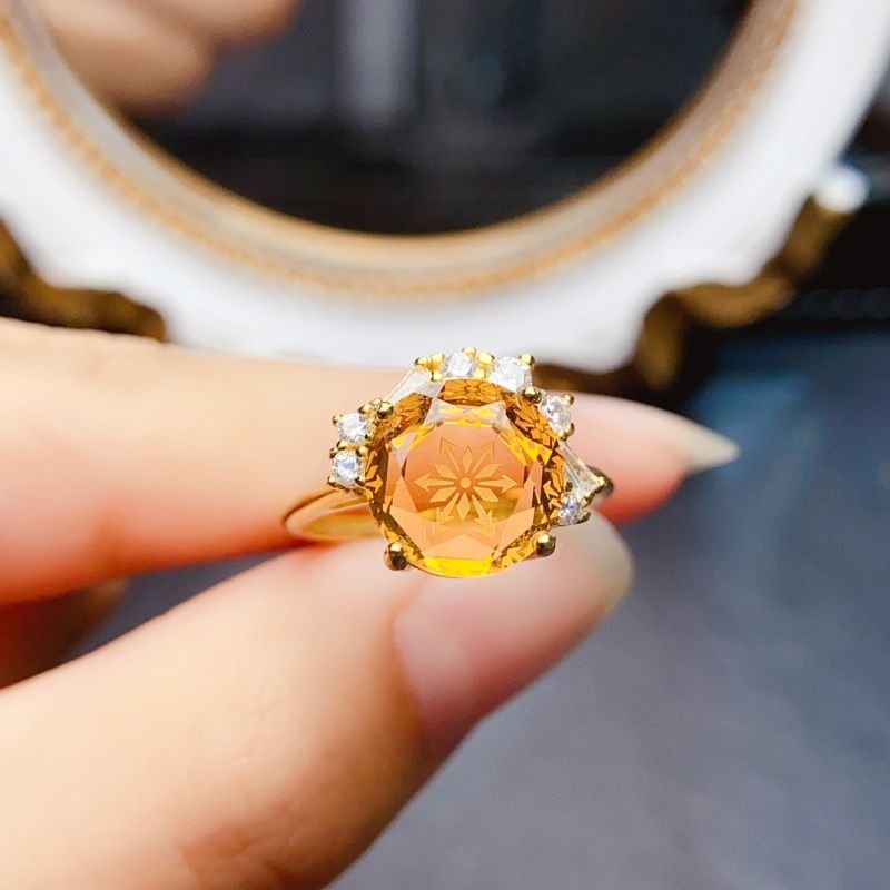 S925 Silver 10x10mm Citrine Rings Nutural Gemstone Jewelry Wholesale 847929759836xi