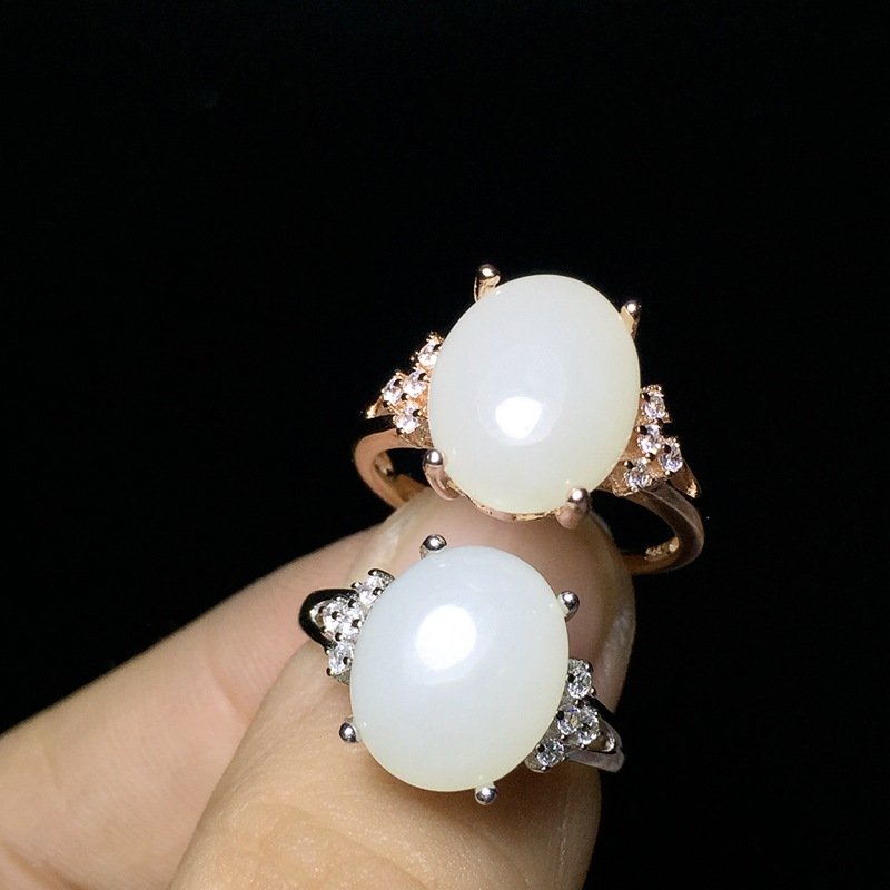 S925 Silver 10x12mm Hotan Jade Rings Nutural Gemstone Jewelry Wholesale 545135944655xi