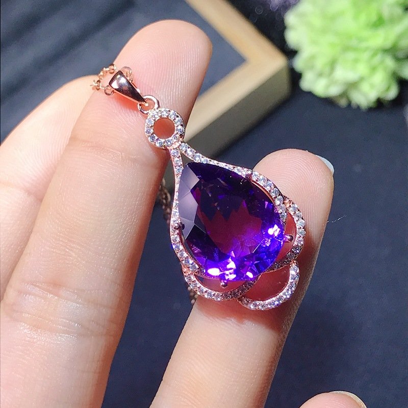 S925 Silver 12x16mm Amethyst Pendants Nutural Gemstone Jewelry Wholesale 619491748772xi