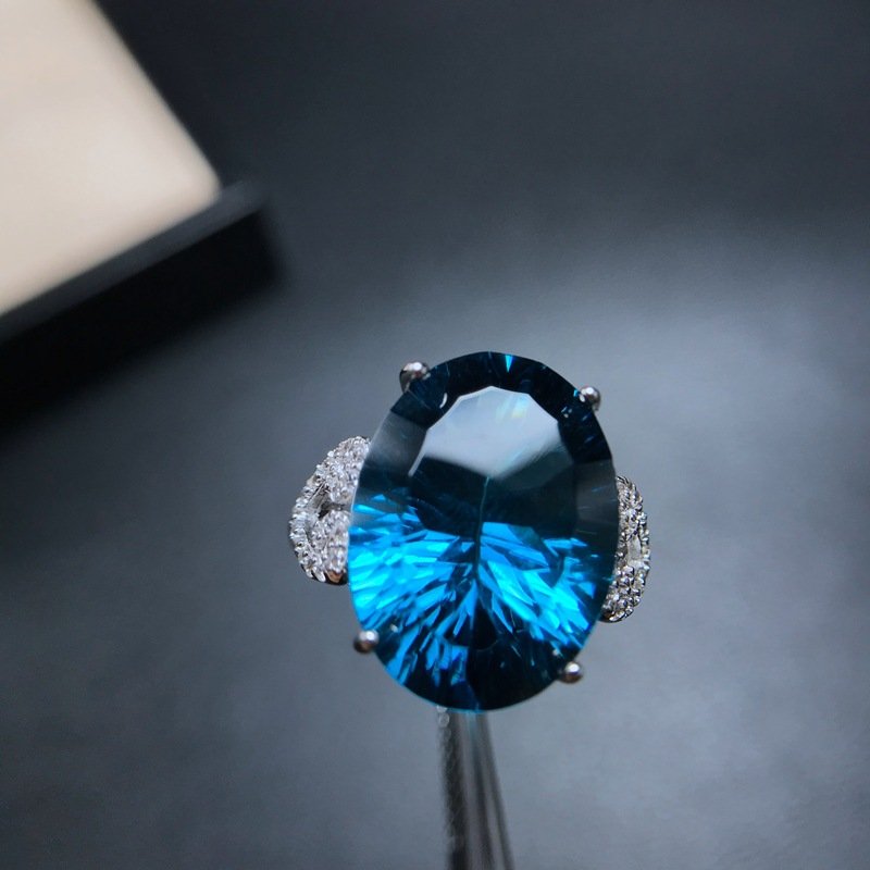 S925 Silver 12x16mm London Blue Topaz Rings Nutural Gemstone Jewelry Wholesale 571886314624xi