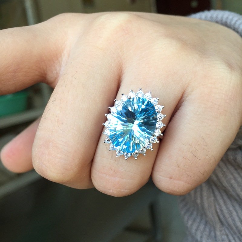 S925 Silver 12x16mm Swiss Blue Topaz Sky Blue Topaz Rings Nutural Gemstone Jewelry Wholesale 544969531510xi