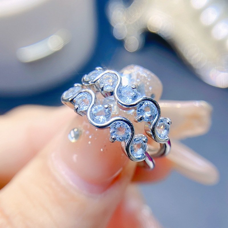 S925 Silver 3x3mm Aquamarine Rings Nutural Gemstone Jewelry Wholesale 683310088131xi