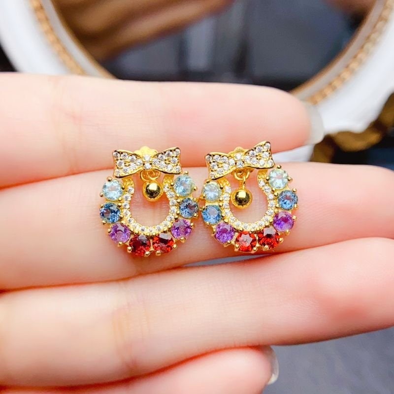 S925 Silver 3x3mm Mixed Gemstone Earrings Nutural Gemstone Jewelry Wholesale 840273323635xi
