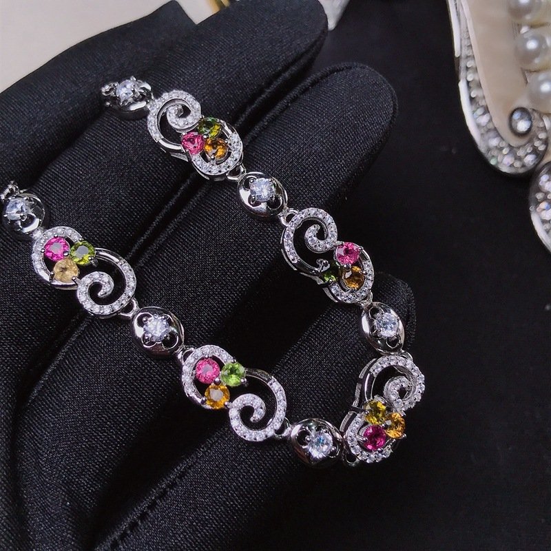 S925 Silver 3x3mm Tourmaline Bracelets Nutural Gemstone Jewelry Wholesale 668348433090xi
