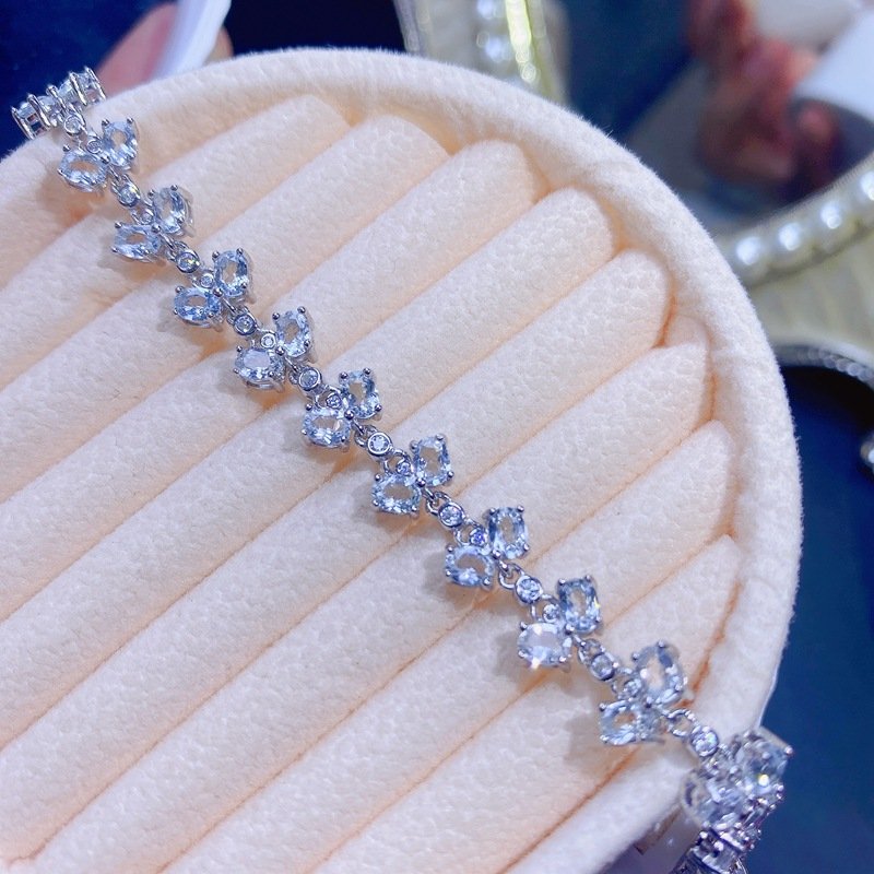 S925 Silver 3x4mm Aquamarine Bracelets Nutural Gemstone Jewelry Wholesale 685077153017xi