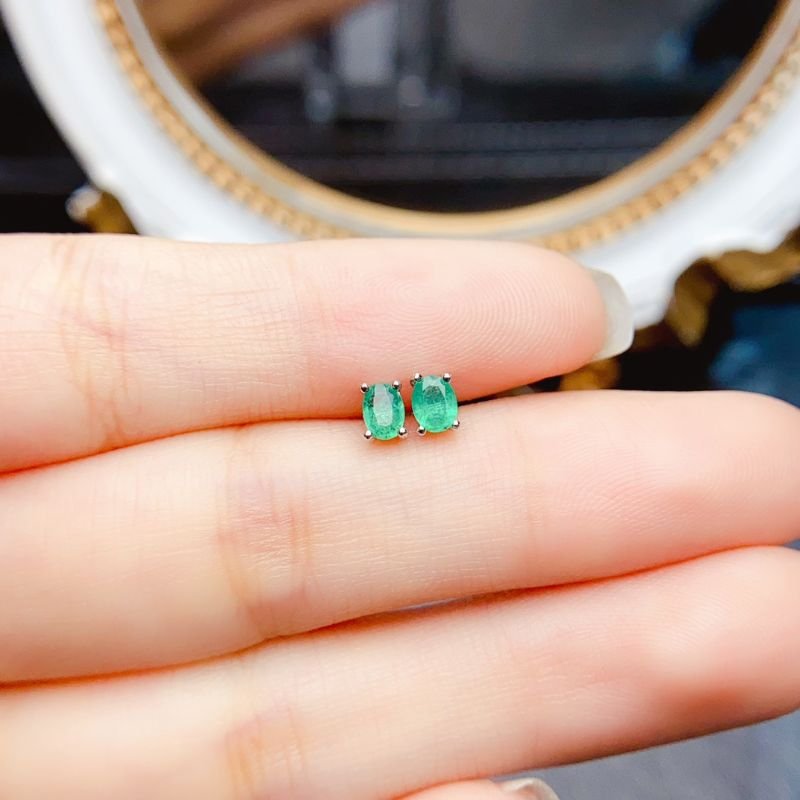 S925 Silver 3x4mm Emerald Earrings Nutural Gemstone Jewelry Wholesale 854031600972xi