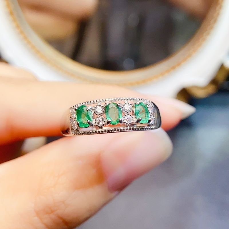 S925 Silver 3x4mm Emerald Rings Nutural Gemstone Jewelry Wholesale 843622108569xi