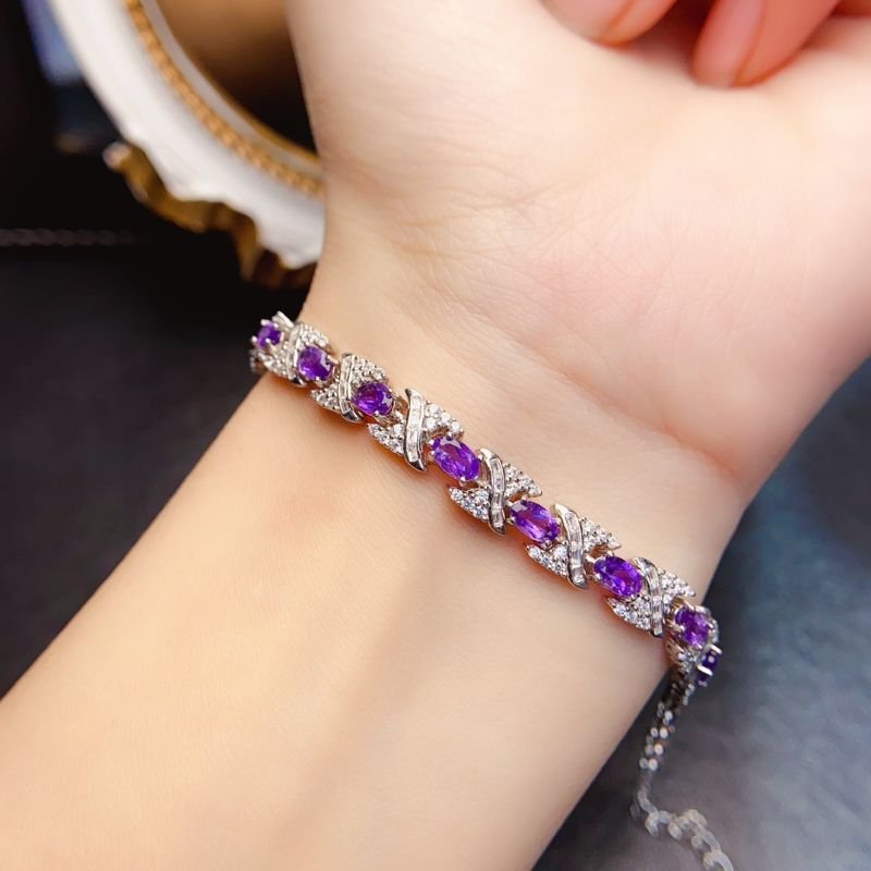 S925 Silver 3x5mm Amethyst Bracelets Nutural Gemstone Jewelry Wholesale 892140835654xi
