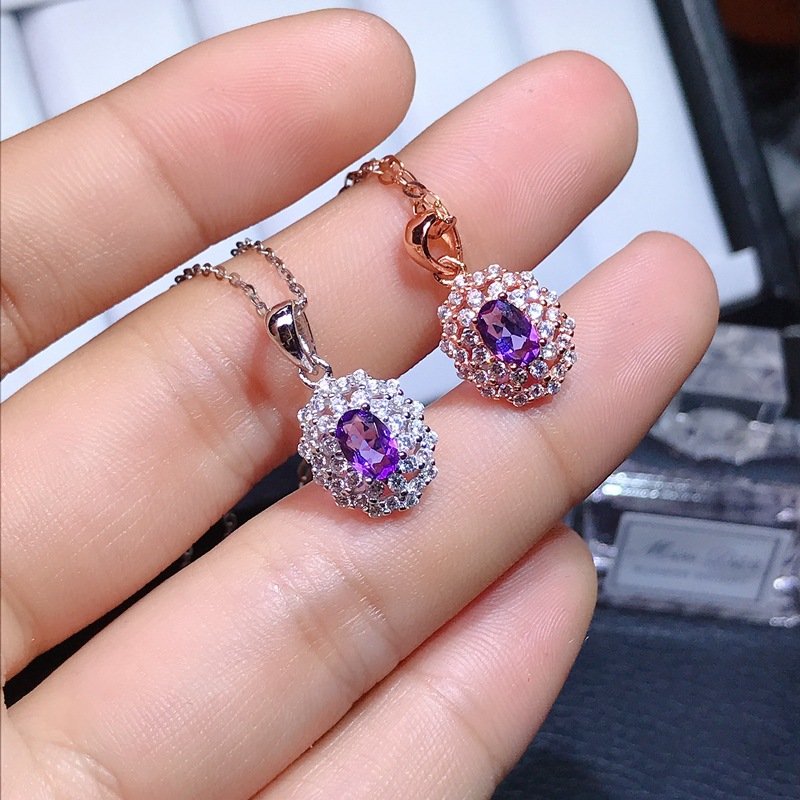 S925 Silver 4x6mm Amethyst Pendants Nutural Gemstone Jewelry Wholesale 618754818441xi