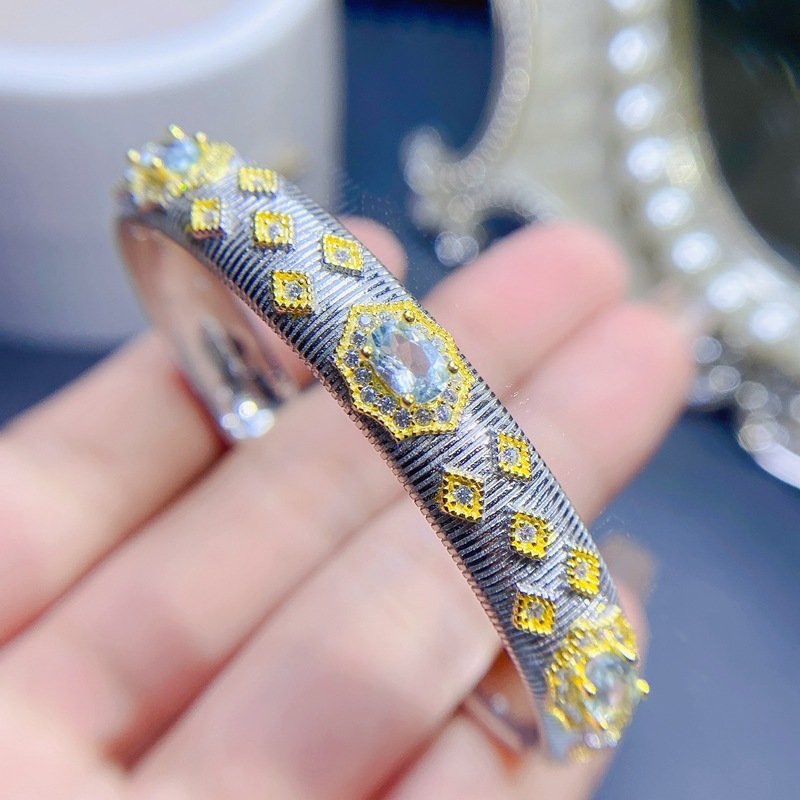S925 Silver 4x6mm Aquamarine Bracelets Nutural Gemstone Jewelry Wholesale 684646916357xi