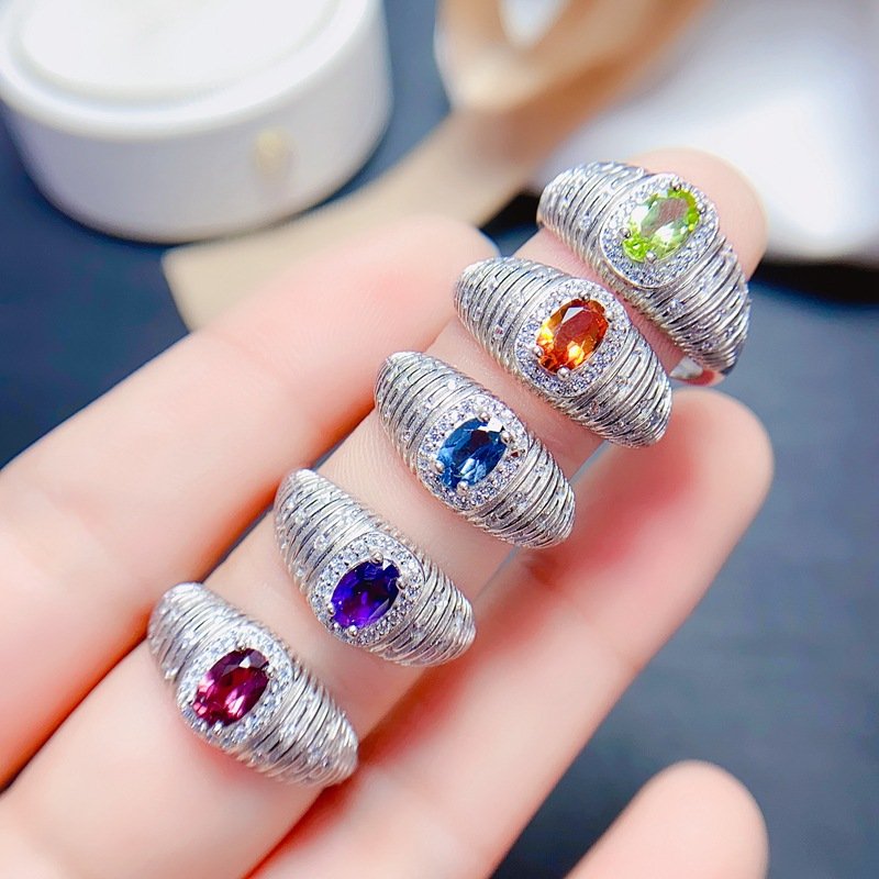 S925 Silver 4x6mm London Blue Topaz Peridot Citrine Amethyst Pyrope Garnet Rings Nutural Gemstone Jewelry Wholesale 712787124710xi