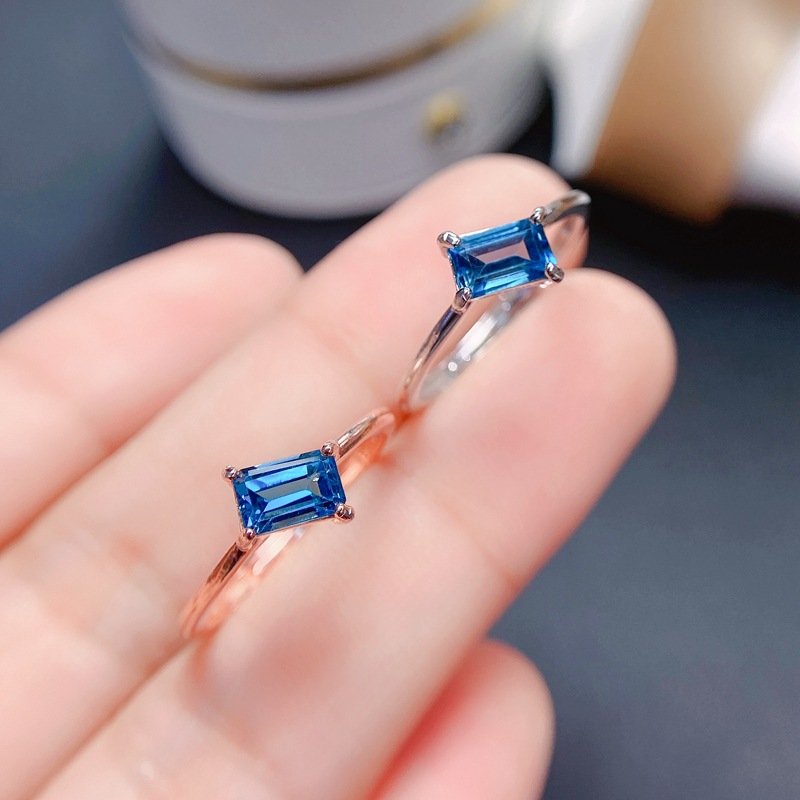 S925 Silver 4x6mm London Blue Topaz Rings Nutural Gemstone Jewelry Wholesale 701786986780xi