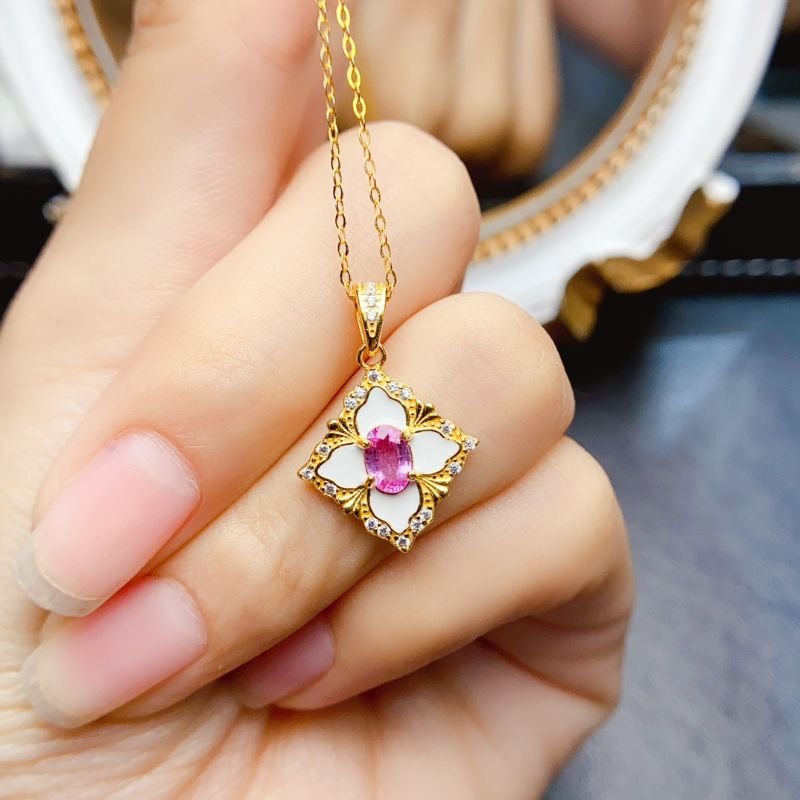 S925 Silver 4x6mm Pink Sapphire Necklaces Nutural Gemstone Jewelry Wholesale 839864621047xi