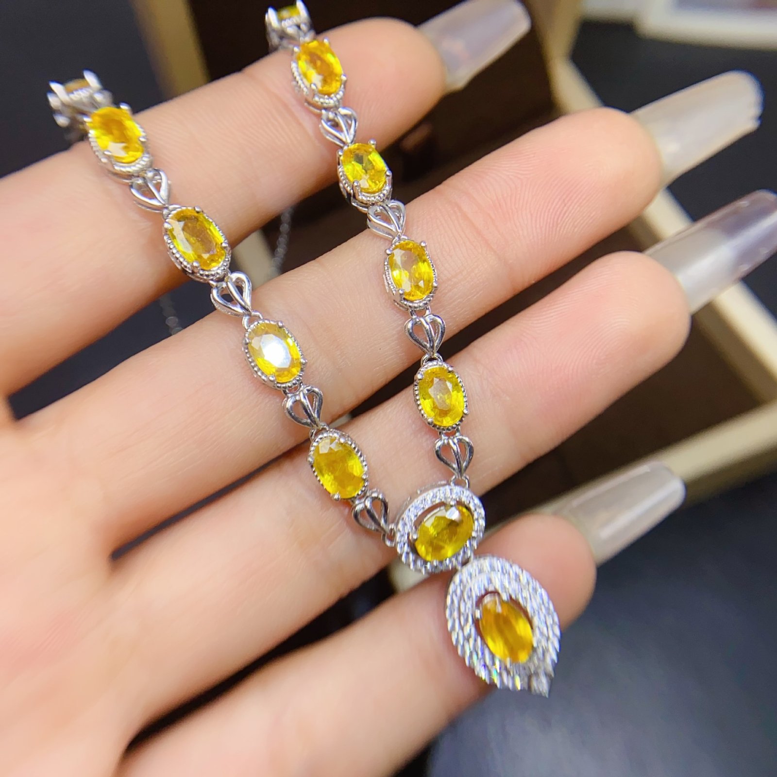 S925 Silver 4x6mm Yellow Sapphire Pendants Nutural Gemstone Jewelry Wholesale 764007778094xi