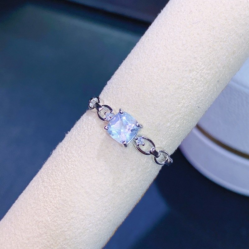 S925 Silver 5x5mm Aquamarine Rings Nutural Gemstone Jewelry Wholesale 674663265577xi