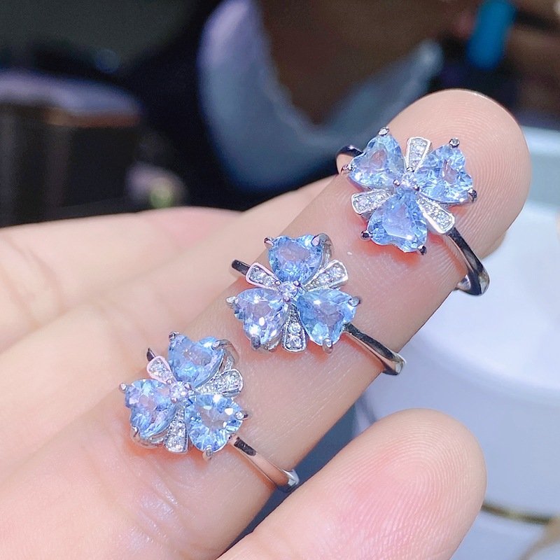S925 Silver 5x5mm Aquamarine Rings Nutural Gemstone Jewelry Wholesale 674668917207xi