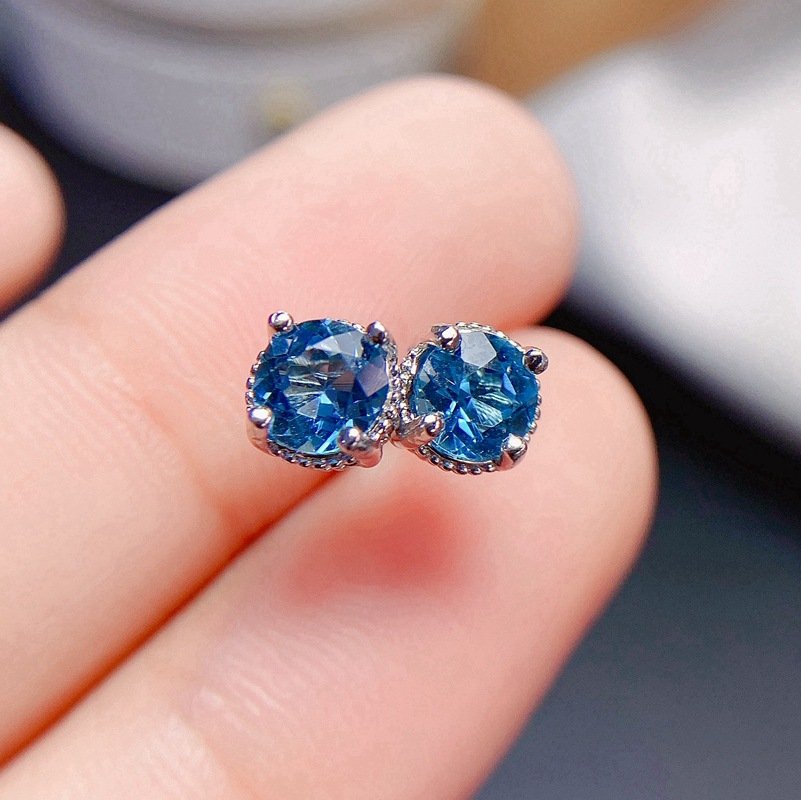 S925 Silver 5x5mm London Blue Topaz Earrings Nutural Gemstone Jewelry Wholesale 677198041106xi