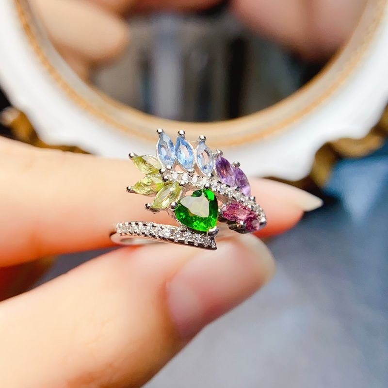 S925 Silver 5x5mm Mixed Gemstone Rings Nutural Gemstone Jewelry Wholesale 842091788160xi