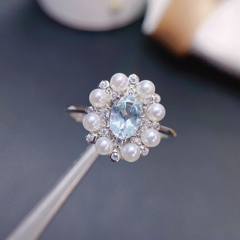 S925 Silver 5x7mm Aquamarine Rings Nutural Gemstone Jewelry Wholesale 674669157194xi