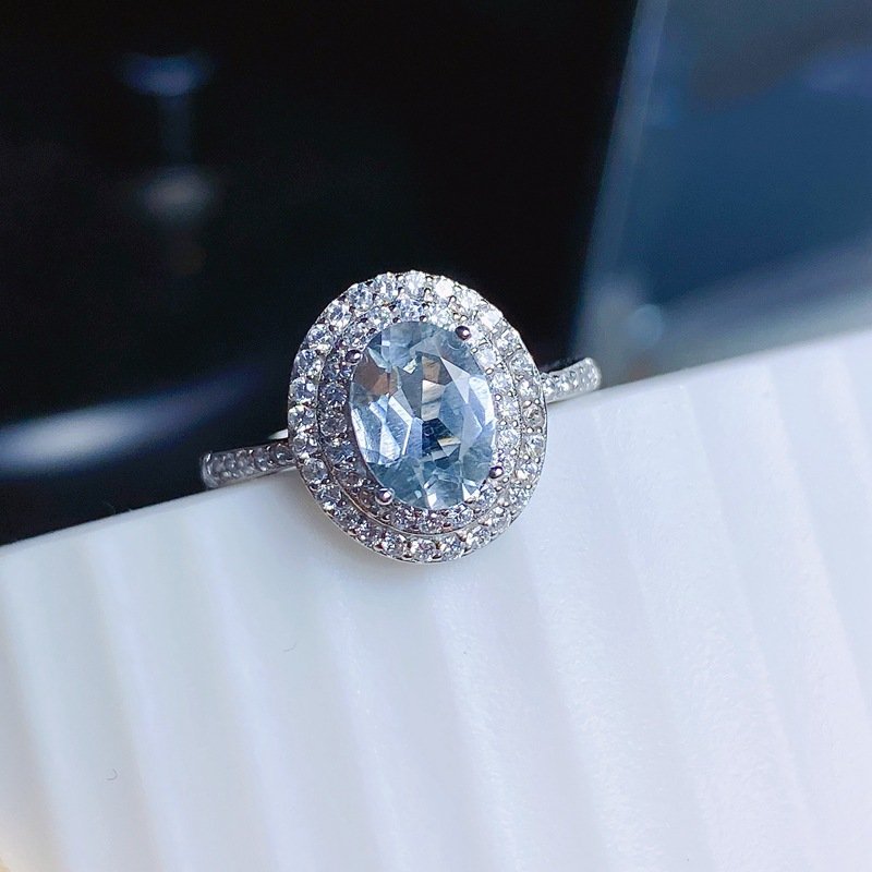S925 Silver 5x7mm Aquamarine Rings Nutural Gemstone Jewelry Wholesale 680319259173xi