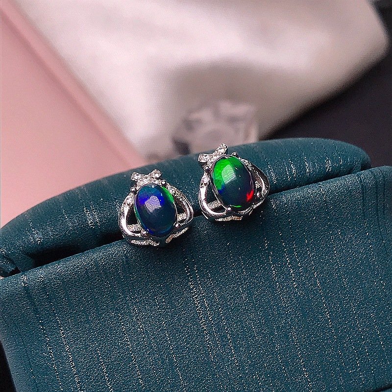 S925 Silver 5x7mm Black Opal Earrings Nutural Gemstone Jewelry Wholesale 661998343131xi