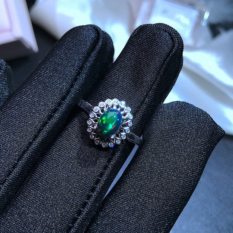 S925 Silver 5x7mm Black Opal Opal Rings Nutural Gemstone Jewelry Wholesale 625517697060xi