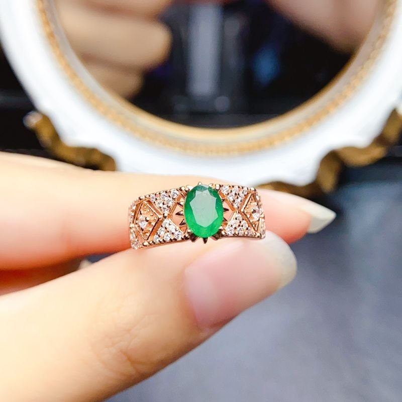S925 Silver 5x7mm Emerald Rings Nutural Gemstone Jewelry Wholesale 836625980989xi