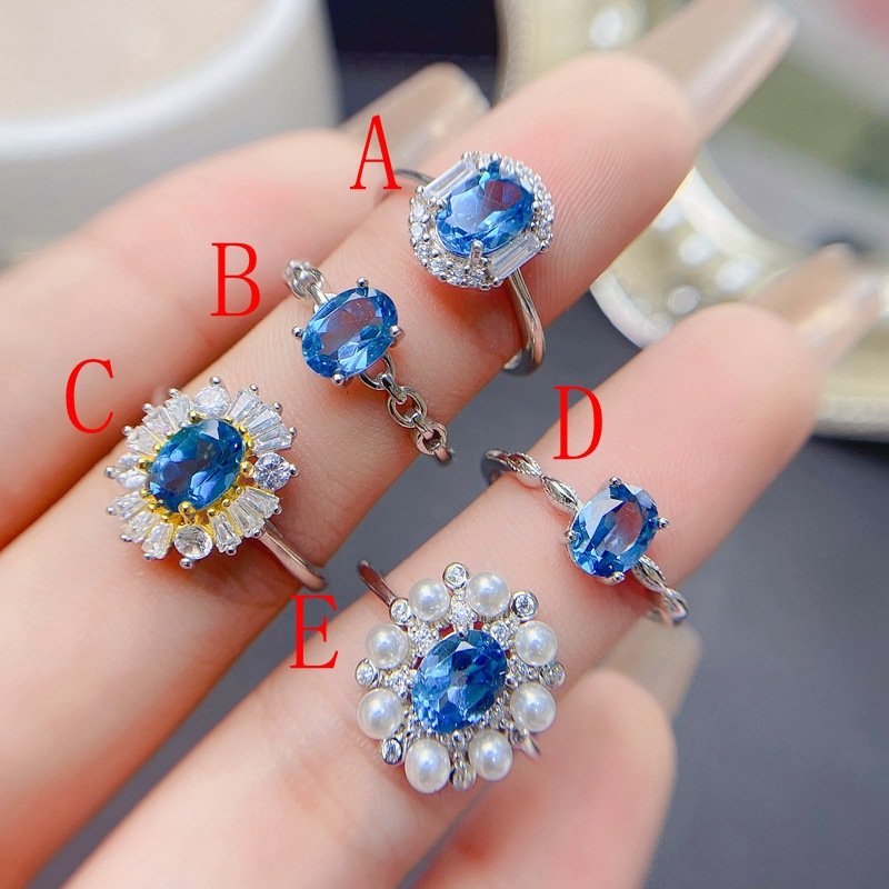 S925 Silver 5x7mm Swiss Blue Topaz Rings Nutural Gemstone Jewelry Wholesale 684854735448xi