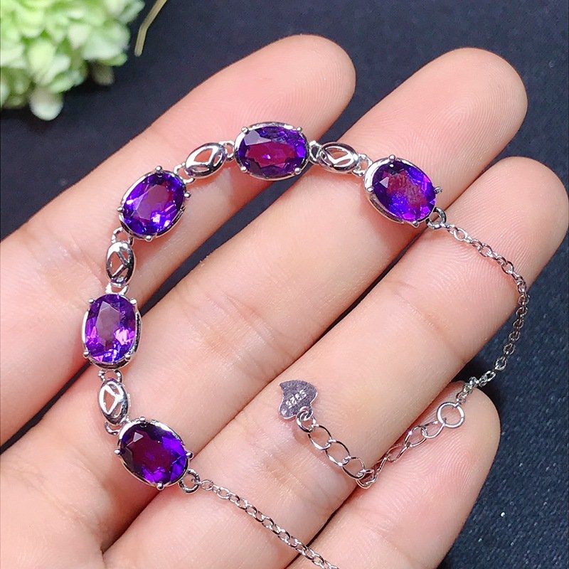 S925 Silver 6x8mm Amethyst Bracelets Nutural Gemstone Jewelry Wholesale 623496685700xi