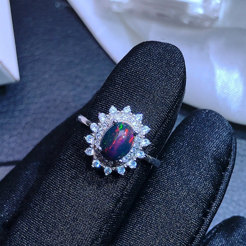 S925 Silver 6x8mm Black Opal Rings Nutural Gemstone Jewelry Wholesale 625200012404xi