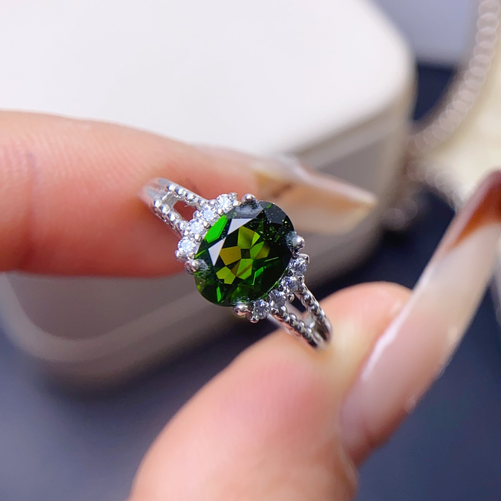S925 Silver 6x8mm Diopside Rings Nutural Gemstone Jewelry Wholesale 763382439901xi
