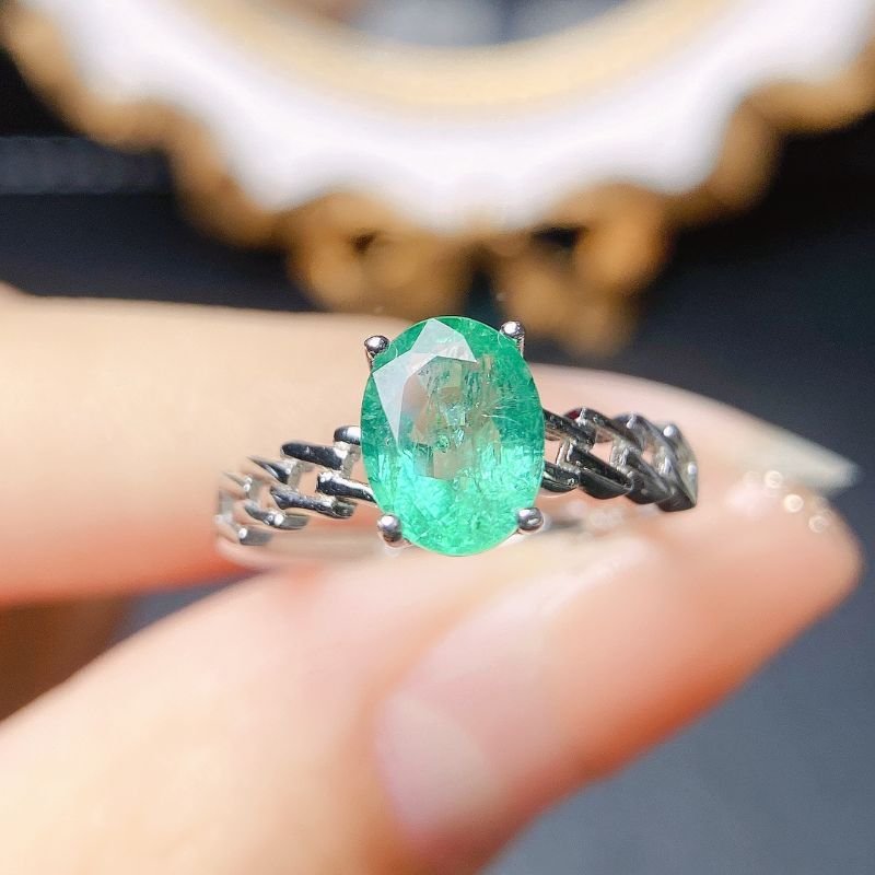 S925 Silver 6x8mm Emerald Rings Nutural Gemstone Jewelry Wholesale 876903124159xi