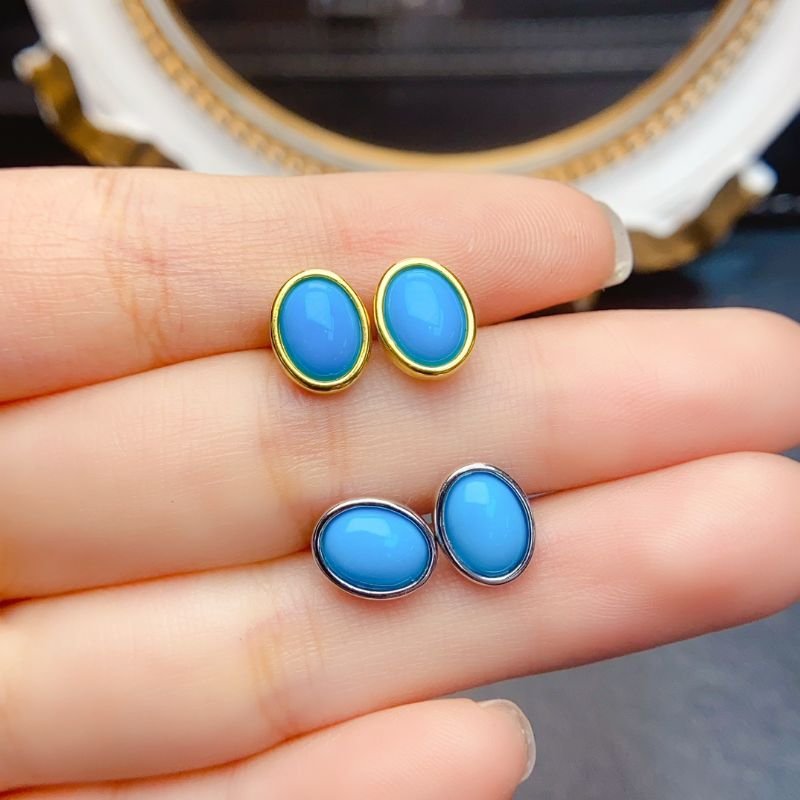 S925 Silver 6x8mm Turquoise Earrings Nutural Gemstone Jewelry Wholesale 908983959760xi
