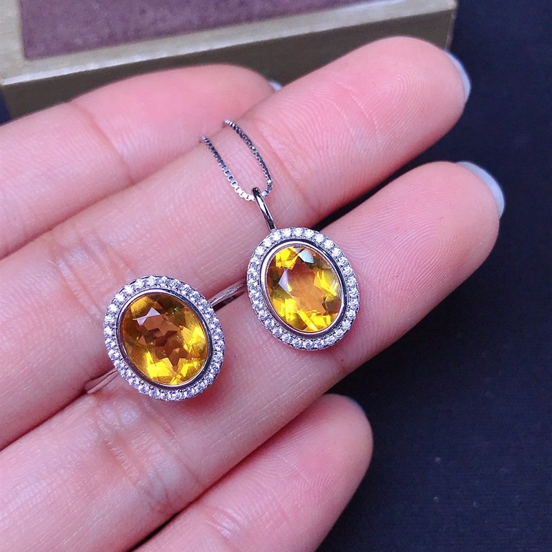 S925 Silver 7x9mm Citrine Rings Nutural Gemstone Jewelry Wholesale 667690330336xi