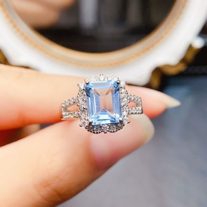 S925 Silver 7x9mm Sky Blue Topaz Rings Nutural Gemstone Jewelry Wholesale 848070113510xi