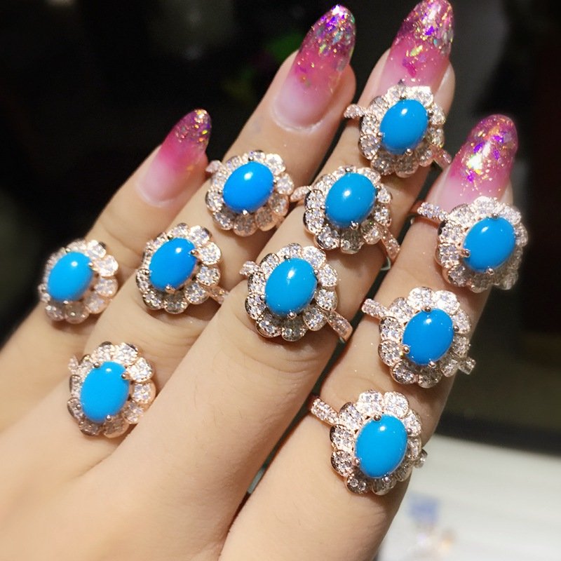S925 Silver 7x9mm Turquoise Rings Nutural Gemstone Jewelry Wholesale 521325838173xi