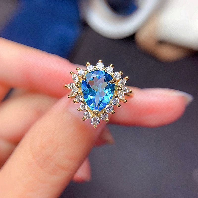 S925 Silver 8x10mm Swiss Blue Topaz Rings Nutural Gemstone Jewelry Wholesale 661824586067xi