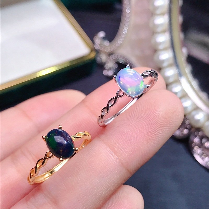 S925 Silver 6x8mm Black Opal Opal Rings Nutural Gemstone Jewelry Wholesale 674387288666xi
